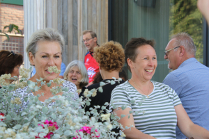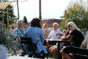 Na afloop van de wandeling was er voor ieder iets te drinken met vlaai bij het restaurant van de Brouwerij. Precies op tijd was de activiteit afgelopen: er stak een frisse wind op en de zon verdween achter de wolken.