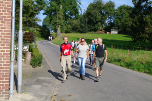 Zondagochtend 26 september verzamelden de deelnemers zich bij de Alfa Brouwerij in Thull bij Schinnen. Voorzien van appels en een routebeschrijving vertrokken de Schaatsvrienden; eerst in kleine groepjes, maar al snel vermengd tot een lang lint van wandelaars die blindelings vertrouwden op de navigatiekunsten van de ‘voorlopers’. Het was een mooie wandeling van 6,5 kilometer, in het Geleenbeekdal, met zijn verrassende, heuvelachtige landschap. Pittige klimmetjes soms, maar die inspanning was snel vergeten bij het zien van de fraaie uitzichten.