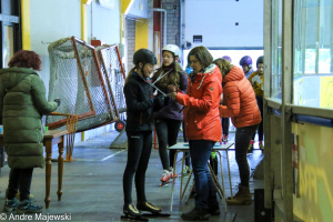 We waren al vroeg naar de ijshal gegaan zodat we konden helpen opbouwen, samen met andere mensen. We hebben geveegd en alle spullen klaar gezet.