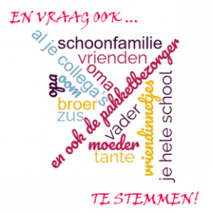 Als ook jouw ouders, schoonmoeder, vrienden, opa, buren, collega's, tante, pakketbezorger, ... stemmen, maken we nog meer kans. Dus, kleine moeite, stuur dit bericht met onderstaande link door aan wie je ook maar kent, want we kunnen iets extra’s goed gebruiken!