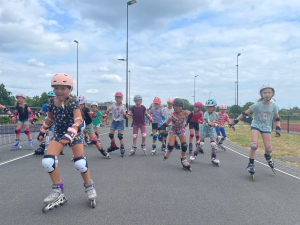 De afgelopen vijf weken hebben 23 kinderen uit Beek skeelerles gekregen op sportlandgoed de Haamen. Dit initiatief werd mogelijk gemaakt door NJOY, het sport-, cultuur- en leefstijlstimuleringsproject van de gemeente Beek. De Limburgse Schaatsvrienden hebben samen met enthousiaste kinderen van groep 3 tot en met 8 gewerkt aan het aanleren van de basis van het skeeleren. Ze hebben geleerd hoe ze moeten remmen, vallen, opstaan, slalommen, achteruitrijden en zelfs op één been kunnen skeeleren.