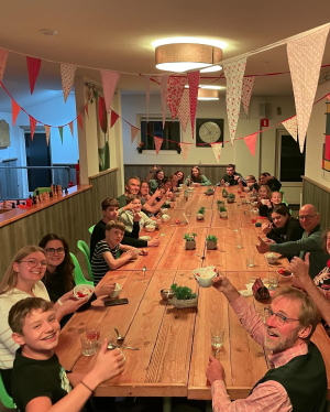 Na het eten hebben we een bonte avond gedaan. Er waren hele leuke acts, waaronder een glow in de dark act, wat googelarij, saxofoon, accordeon, barbie girl playback act, en afsluitend nog een zelfgeschreven nummer van de leiding (credits aan Willy de Koning-Bovenhoff). Kortom, gezellig.