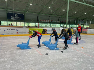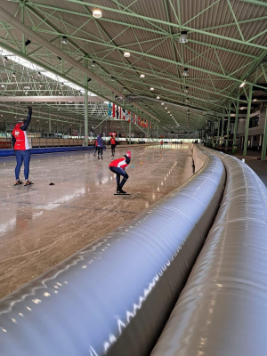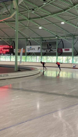 De ochtend begon niet anders dan de andere om half 8. We werden wakker gemaakt met gezellige muziek. Om 8 uur zaten we aan het ontbijt. Met tranen in onze ogen zijn we begonnen met het opruimen en inpakken van de spullen. Voor de laatste rondjes zijn we het ijs op gegaan. Eerst werd er nog goed getraind, bochten, aansluiten van de voeten, recht op de schaatsen staan en nog veel meer. Nu waren we echt klaar voor de wedstrijdjes. De 100-500 meter werd gereden, met het doel om te kijken hoe we ons zelf hadden verbeterd en welke progressie er gemaakt is deze week. De spanning zat er goed in en iedereen verscheen aan de start. Secondes die vlogen van de tijden af, PR'ers werden gereden en iedereen was tevreden. Hierna hebben we dan toch echt afscheid moeten nemen van de baan en natuurlijk van Jip in de winkel die ons ontzettend goed heeft geholpen met onze schaatsen klaar maken voor deze winter. Kort daarna zijn we met wat lekkers de bus ingestapt en vertrokken naar Geleen om dit geweldige kamp af te sluiten. We hebben er ontzettend van genoten. Met dank aan alle begeleiders en trainers die dit mogelijk hebben gemaakt!