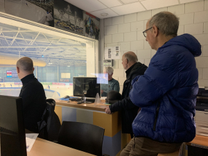 Om een beeld te krijgen van dit nieuwe systeem, maar vooral ook wat dit betekent aan noodzakelijke aanpassingen in de infrastructuur rond de ijsbaan (bekabeling, voorzieningen in de jury-wagen/toren plaatsing scorebord) zijn Jan Geilen, Pierre Swelsen, Wiel van der Heyden en Jan de Koning zondag 21 januari naar Tilburg gegaan. Wij hebben daar voorafgaande aan de wedstrijd gesproken met verschillende mensen onder wie één van de techneuten, ET-bedieners en Baancommissieleden. Gedurende de wedstrijd hebben we kunnen zien hoe de systemen werken.