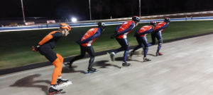 Ondertussen schoot de 50 plus groep iedereen voorbij aan de binnenbaan. Met rondjes van gemiddeld 50 seconde hebben ze uiteindelijk 73 rondes kunnen volmaken. De laatste twee rondes met Wilfried op kop. Een eervolle afsluiting van meer dan 30 jaren schaatsen in Geleen. Wilfried gaat verhuizen naar Zieuwent. Wilfried, we zullen je missen!