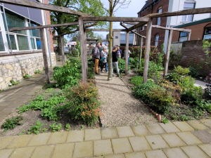 Na de brunch werd er met een grote groep koers gezet naar de Heemkunde tuin en expositielokalen van de Heemkunde Vereniging Geleen. Groot was de verbazing van een van de deelnemers toen bleek dat zij hier als 6-jarig meisje op school had gezeten.