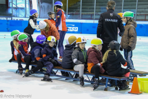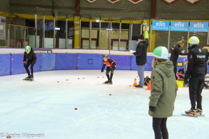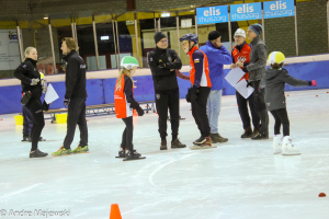 Al om 7:30 uur ’s ochtends kwamen enkele enthousiaste vrijwilligers bijeen om de kussens op de baan te plaatsen. Stipt om 9:00 uur ging het toernooi van start en alles verliep op rolletjes of eigenlijk ijzertjes! De kinderen zoefden over het ijs, en hoewel het wachten tussen de heats soms wat lang leek, was de sfeer ontspannen en vrolijk. Er werden fantastische tijden neergezet en leuke wedstrijden tegen elkaar gereden. En dat onder de enthousiaste aanmoediging van trainers en publiek.