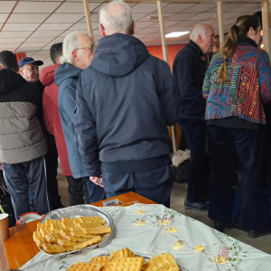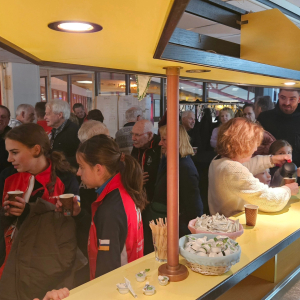 Het was gezellig druk tijdens het nieuwjaarstreffen op zaterdag 4 januari. Onder het genot van koffie, warme chocomel en wafels hebben we bijgekletst en konden we van binnenuit kijken naar de nieuwe overkapping, waaronder we hopelijk kunnen schaatsen in maart.