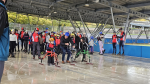 Om 10.00 uur werd het startschot gegeven. De jeugd, frameschaatsers en wethouder op frame legden de eerste 100 meter af, tot bij het rode lint dat over de baan was gespannen. Voorzitter Jan de Koning, wethouder Leon Geilen en KNSB vertegenwoordiger Martijn Hagen spraken daar mooie woorden. Na ca. 16 jaar lobby'en voor een overkapping is deze er eindelijk gekomen, met veel dank aan alle vrijwilligers die hier hun steentje aan bij hebben gedragen en de gemeenteraad die instemde met de financiering van dit megaproject. De duizenden zonnepanelen op het dak maken dit een unieke schaatsbaan, en daarmee een voorbeeld voor andere banen in Nederland. Wij bewijzen dat je kunt schaatsen op de zon.